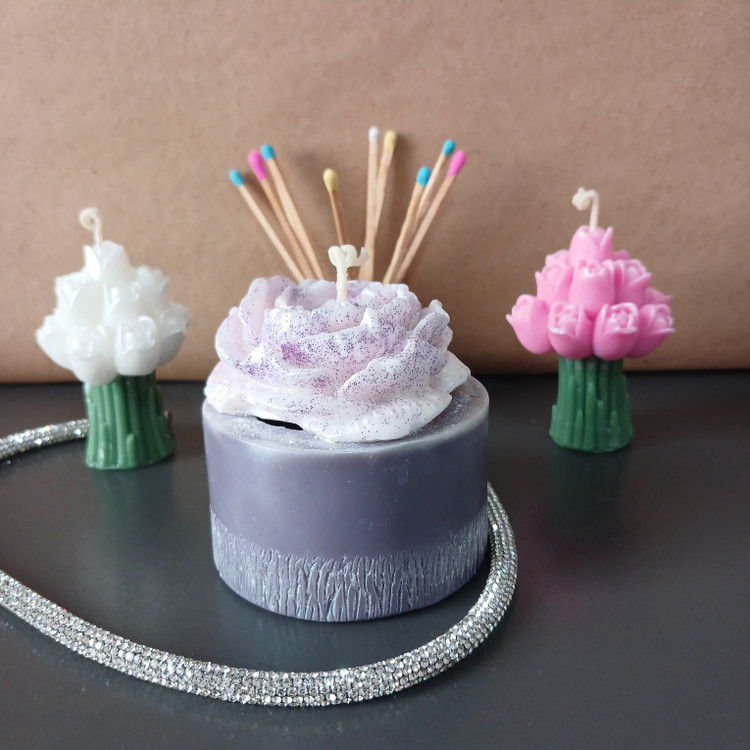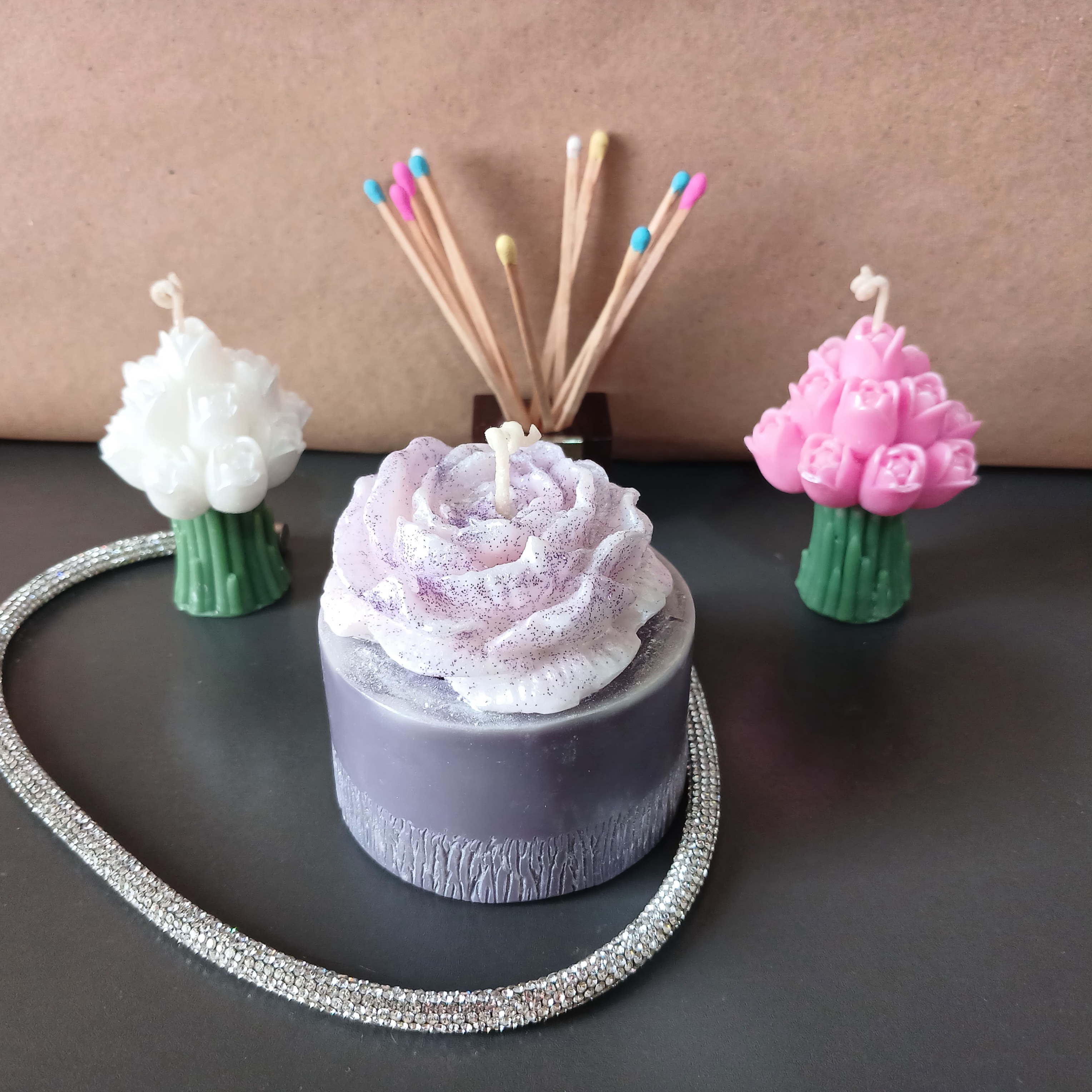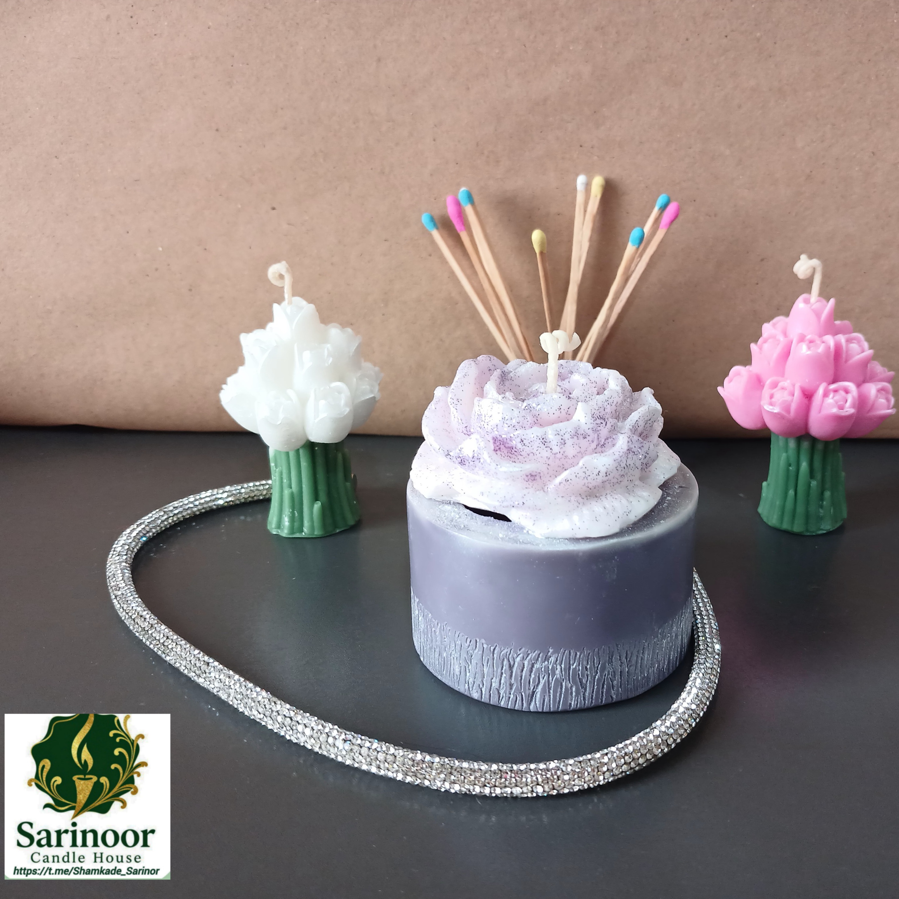 شمع دستساز ،مدل فانوسی با گل آلاله ژورنالی