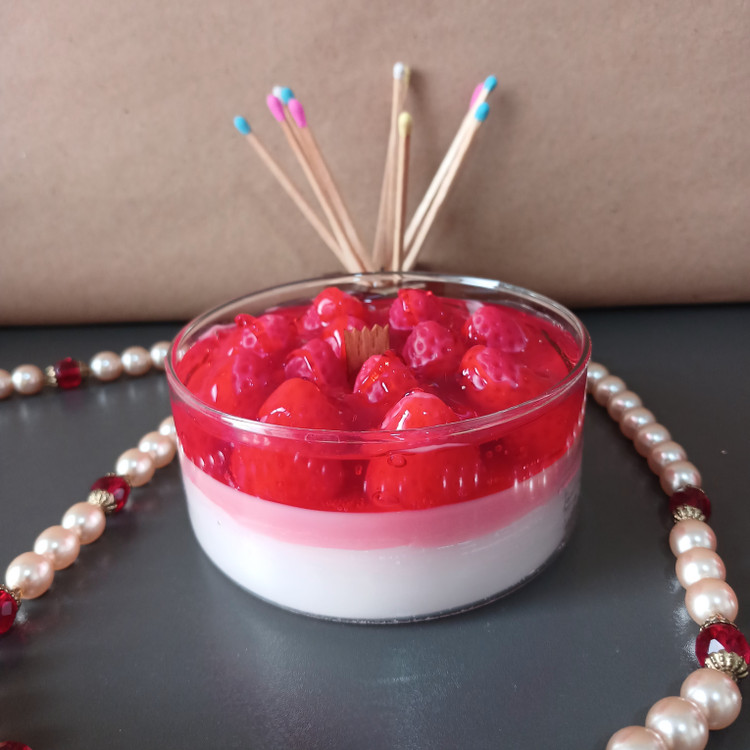 شمع دستساز. مدل دسر توت فرنگی