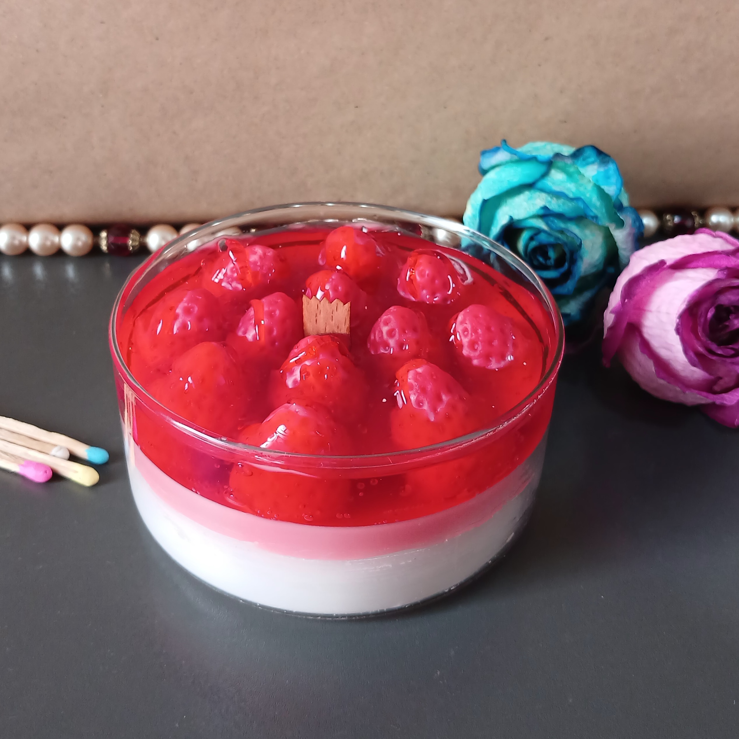 شمع دستساز. مدل دسر توت فرنگی