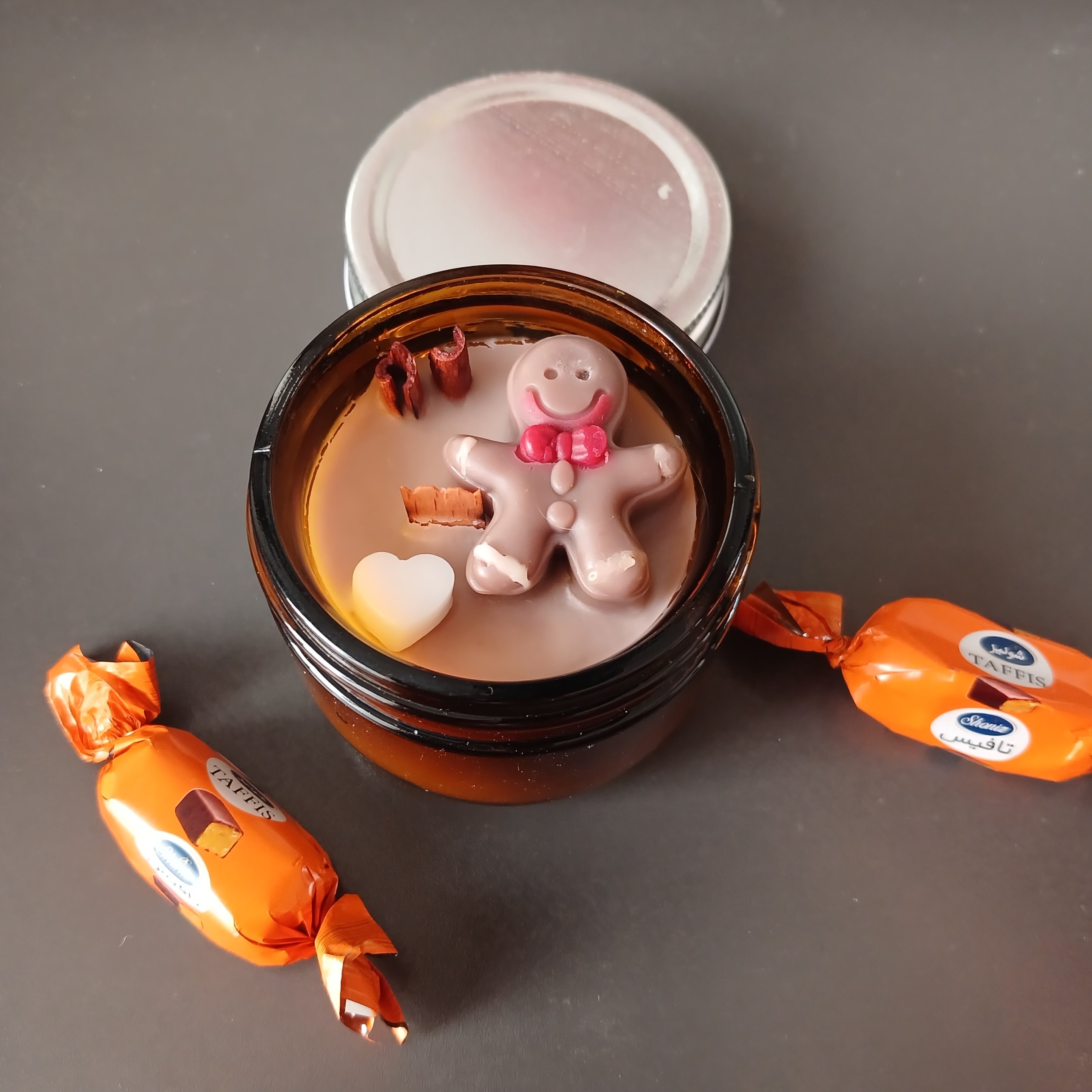 شمع شیشه ای .طرح بیسکویتی با چوب دارچین